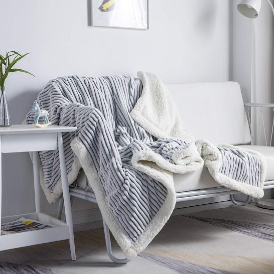 • 【Stripe Design】- flannel double Sided design one side is super soft sherpa fleece which is cozy and warm. The other side is flannel, different color and white stripe pattern with 3D touching offers you amazing senses of softness.