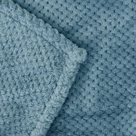 Waffle Textured Slate Blue Fleece Blanket, Super Soft and Warm 50x70 inches Throw Blanket for Couch, Cozy, Fuzzy and Lightweight