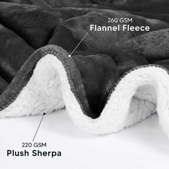 • 480GSM SHERPA FLEECE BLANKET - Our elegantly designed, reversible blanket features Flannel and Sherpa, available in Queen size measuring 90 by 90 inches, the attractive Grey color can quickly glam up your home décor.